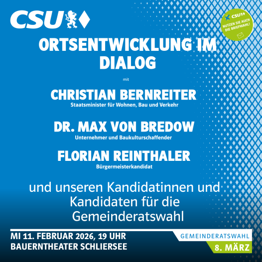Die Schlierseer Bürgermeisterkandidaten Michael Dürr (PWG) und Florian Reinthaler (CSU) wurden am 28. Januar 2026 in die Redaktion des Miesbacher Merkur für ein Interview eingeladen. Das Interview können sie hier nachhören.