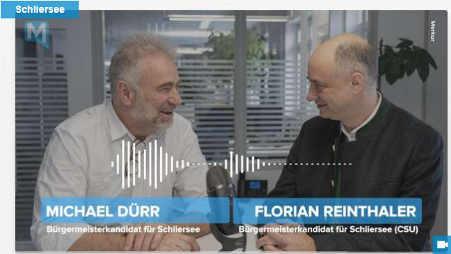 Die Schlierseer Bürgermeisterkandidaten Michael Dürr (PWG) und Florian Reinthaler (CSU) wurden am 28. Januar 2026 in die Redaktion des Miesbacher Merkur für ein Interview eingeladen. Das Interview können sie hier nachhören.